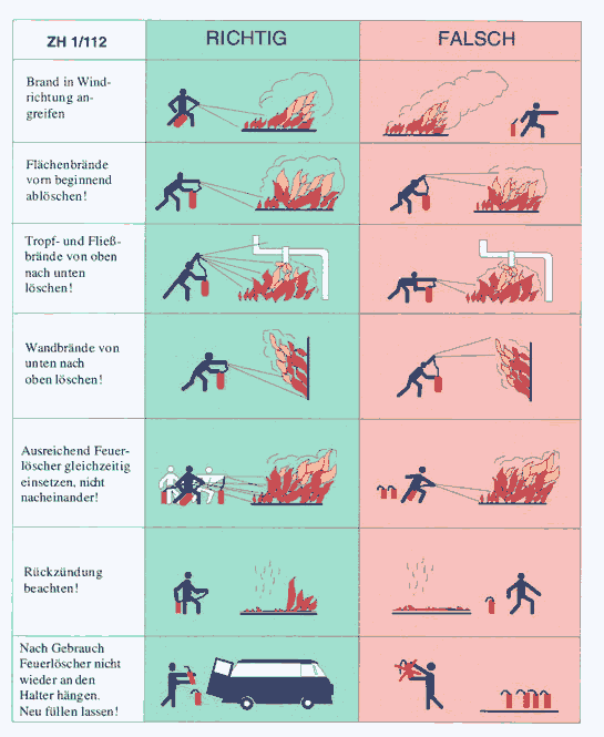 Mit vorhandenen Kleinlöschgeräten (Handfeuerlöscher, Gartenschlauch, Wassereimer) den Entstehungsbrand bekämpfen.